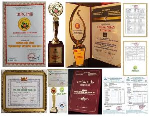 Tất cả đều đạt tiêu chuẩn xuất khẩu của trung tâm giám định Vinacontrol, Quatest3, Bộ y tế…và được tôn vinh trong lễ trao giải doanh nghiệp nông nghiệp tiêu biểu 2017, top 100 thương hiệu vàng nông nghiệp VN 2019, top 10 thương hiệu mạnh đất Việt 2020 và một số giải thưởng khác…